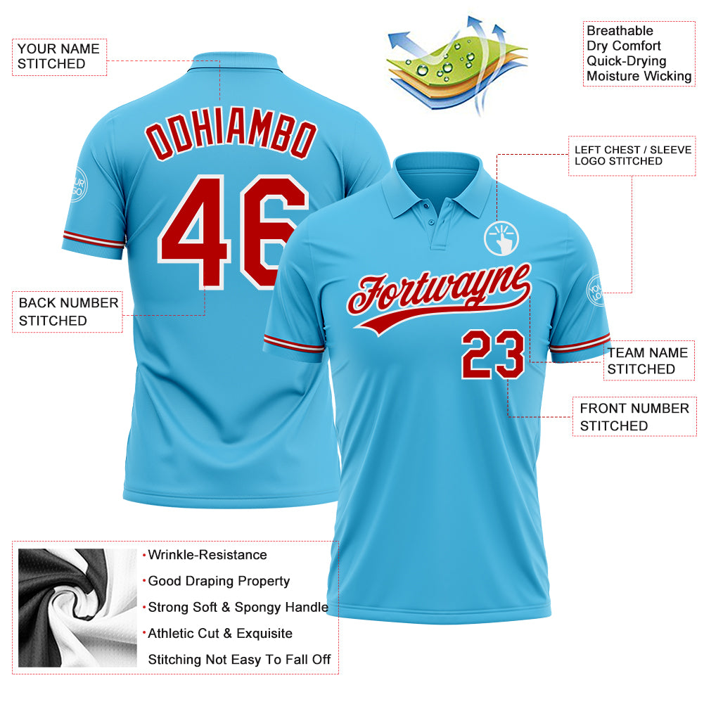 Custom Sky Blue Red-White Performance Vapor Golf Polo Shirt