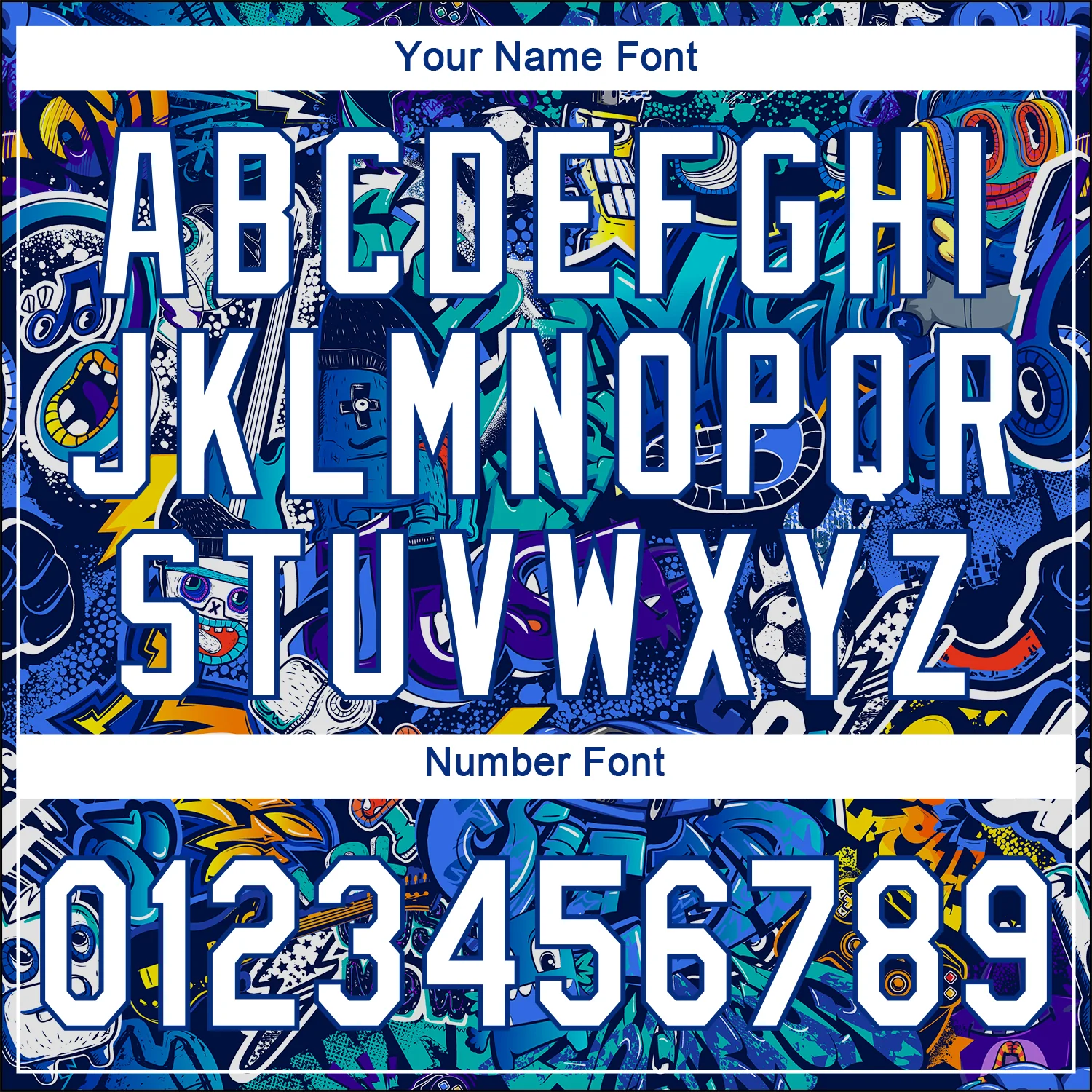 • Custom Graffiti Pattern White-Royal 3D Authentic Baseball Jersey