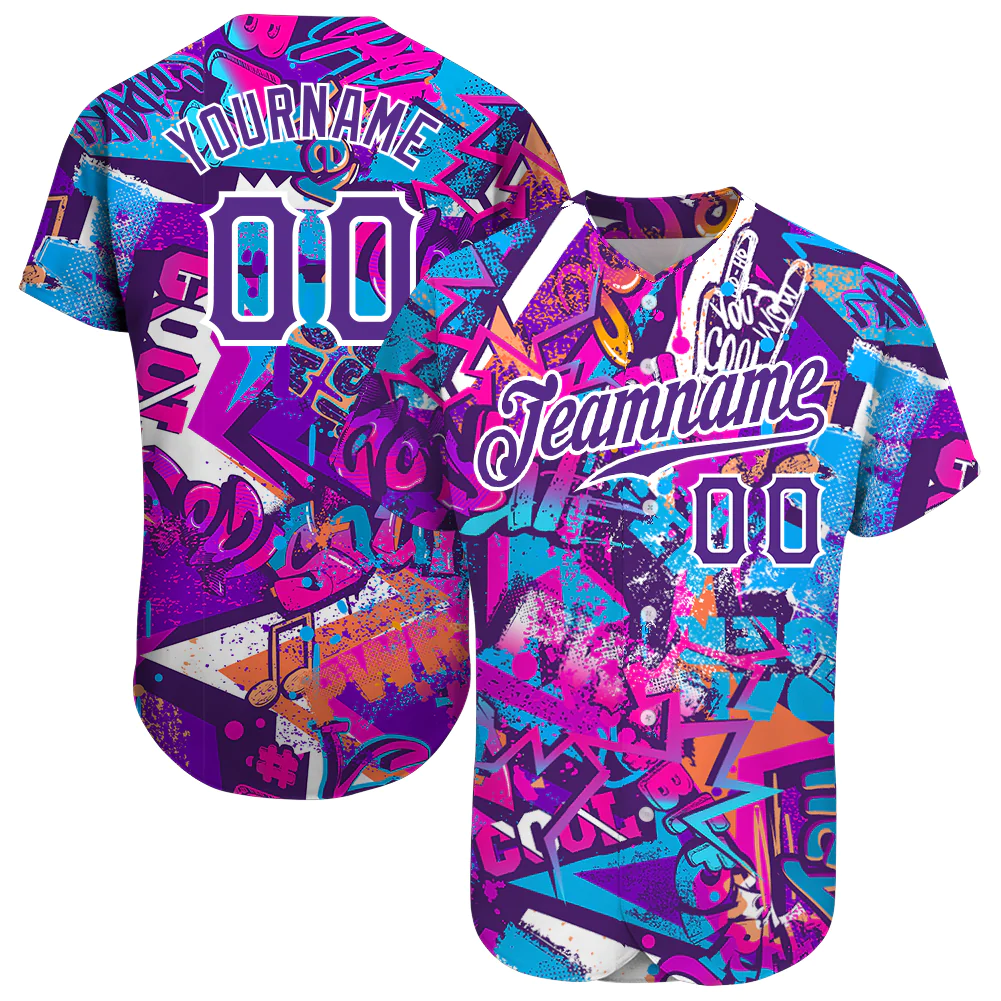 • Custom Graffiti Words Pattern White-Purple 3D Authentic Baseball Jersey