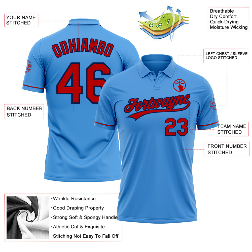 • Custom Powder Blue Red-Navy Performance Vapor Golf Polo Shirt