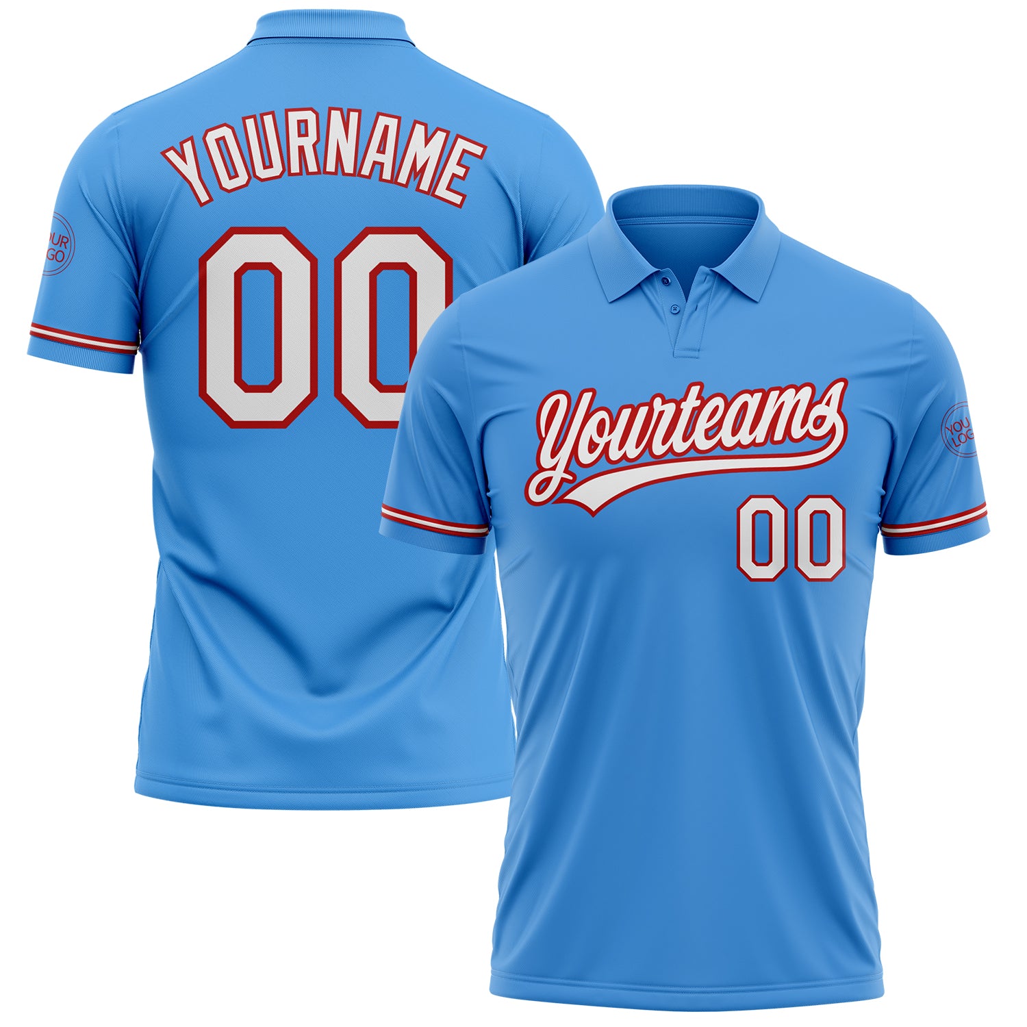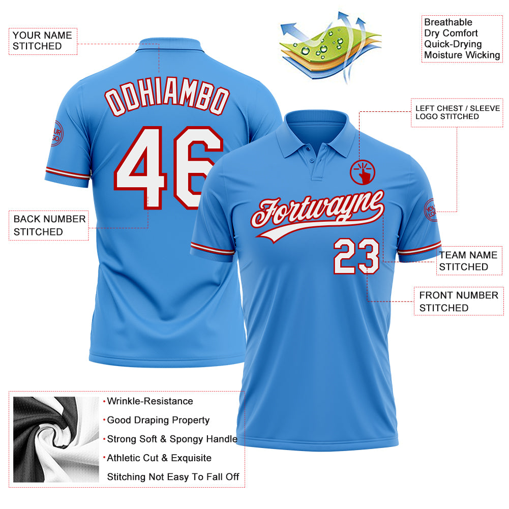 • Custom Powder Blue White-Red Performance Vapor Golf Polo Shirt