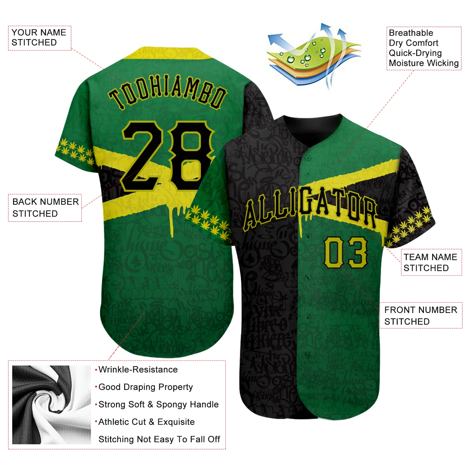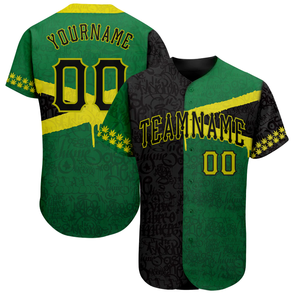• Custom Graffiti Pattern Black-Green 3D Jamaica Authentic Baseball Jersey