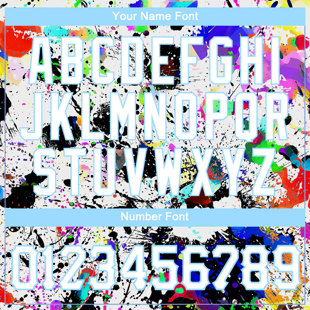 • Custom Splashes Graffiti Pattern White-Light Blue 3D Authentic Baseball Jersey