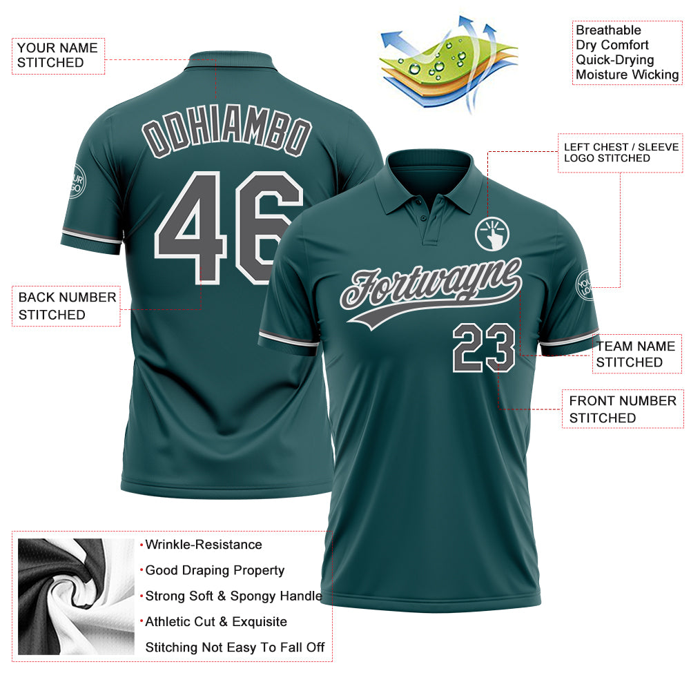 • Custom Midnight Green Steel Gray-White Performance Vapor Golf Polo Shirt