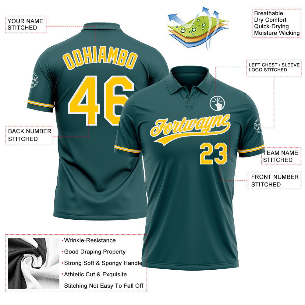 • Custom Midnight Green Yellow-White Performance Vapor Golf Polo Shirt